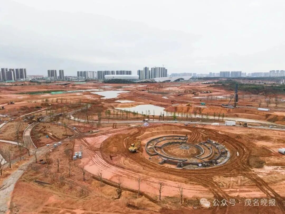 5月底中央湖区蓄水!茂名中央水体公园加速成形。